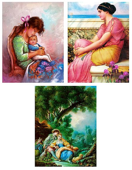Mother and Child, European Lady and Lovers - Set of 3 Posters (Currently out-of-stock)