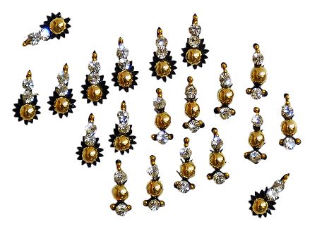 20 Golden Bindis with White Stone