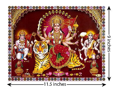 Bhagawati with Bhairav and Hanuman - Glitter Poster (Currently out-of-stock)